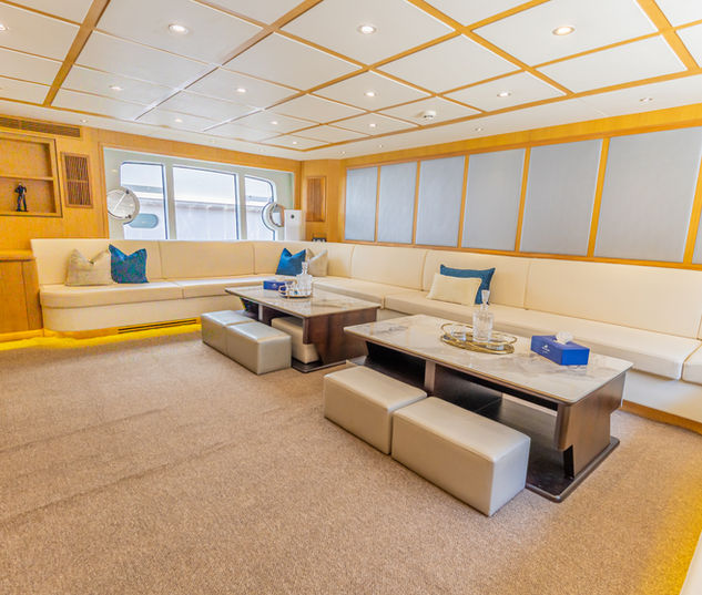 Step aboard the Kona 110, a 110-foot (≈ 34 m) luxury yacht that redefines elegance on Dubai’s shimmering waters.